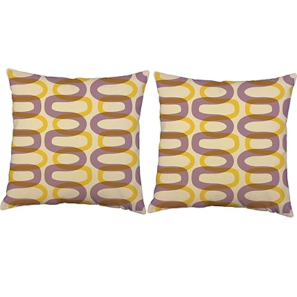 Roomcraft Set Of 2 Purple And Yellow Waves Throw Pillows 14x14 Inch Square Natural Cotton Complementary Color Cushions
